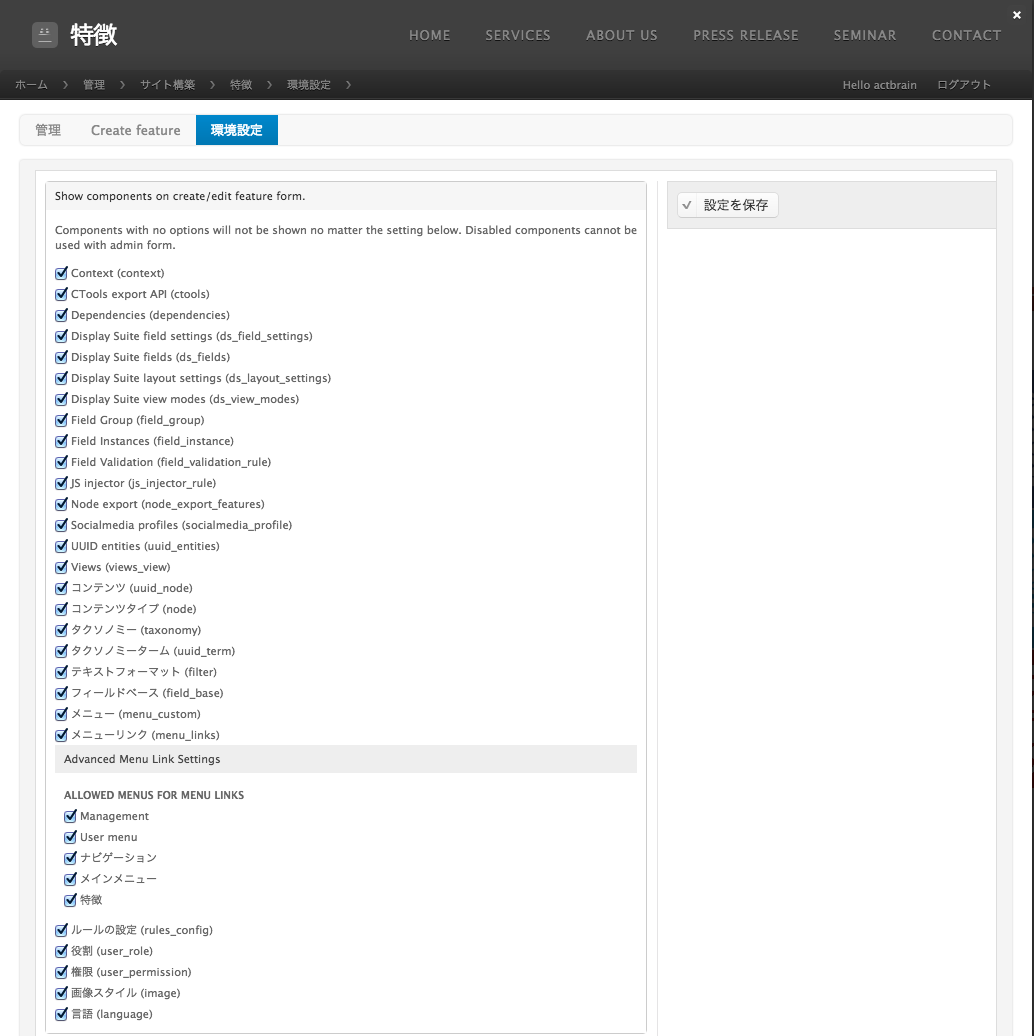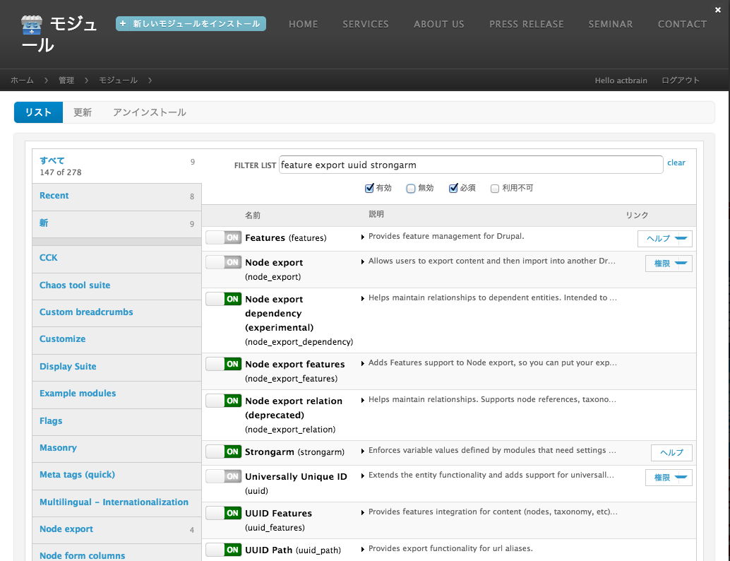 • Node Exportモジュールを有効にすることにより、開発用サイトで作成したノードを本番化する機能が追加されます。